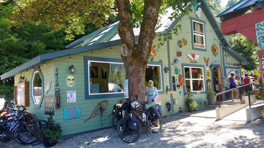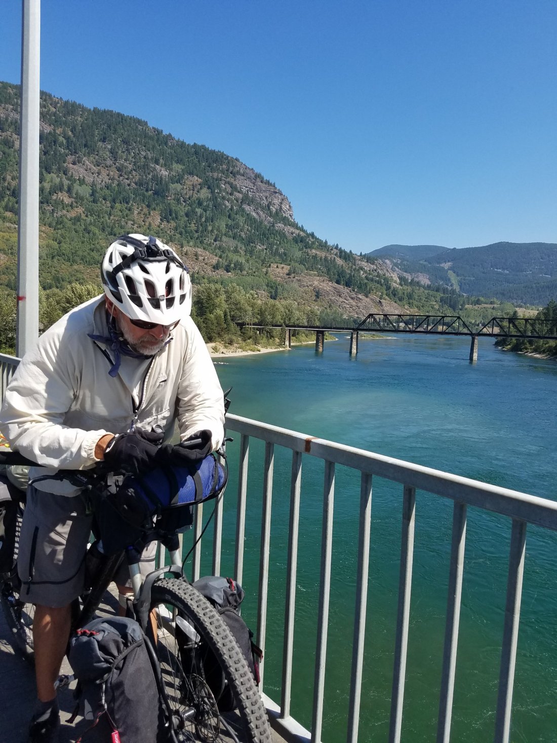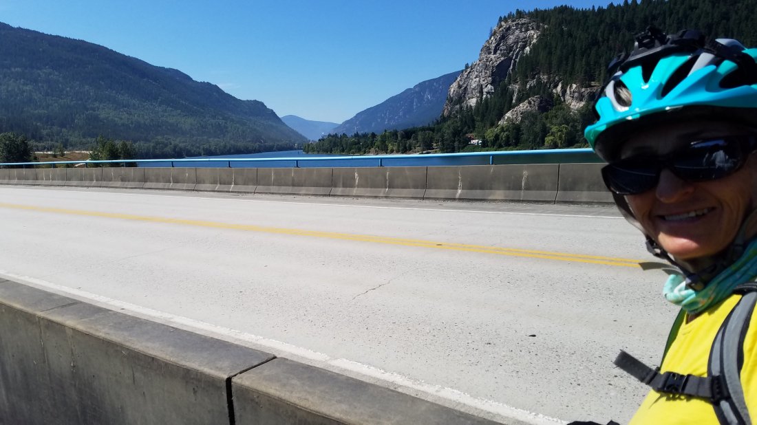 Castlegar was just over a small mountain pass and so a relatively pleasant ride. However, the temperatures were about 90° so it was a bit of a hot ride. Like every city in BC, it seems, Castlegar has a beautiful river and lake with high tree filled mountains surrounding it. We found our motel at the far end of town at the top of a hill and settled in for the evening.
