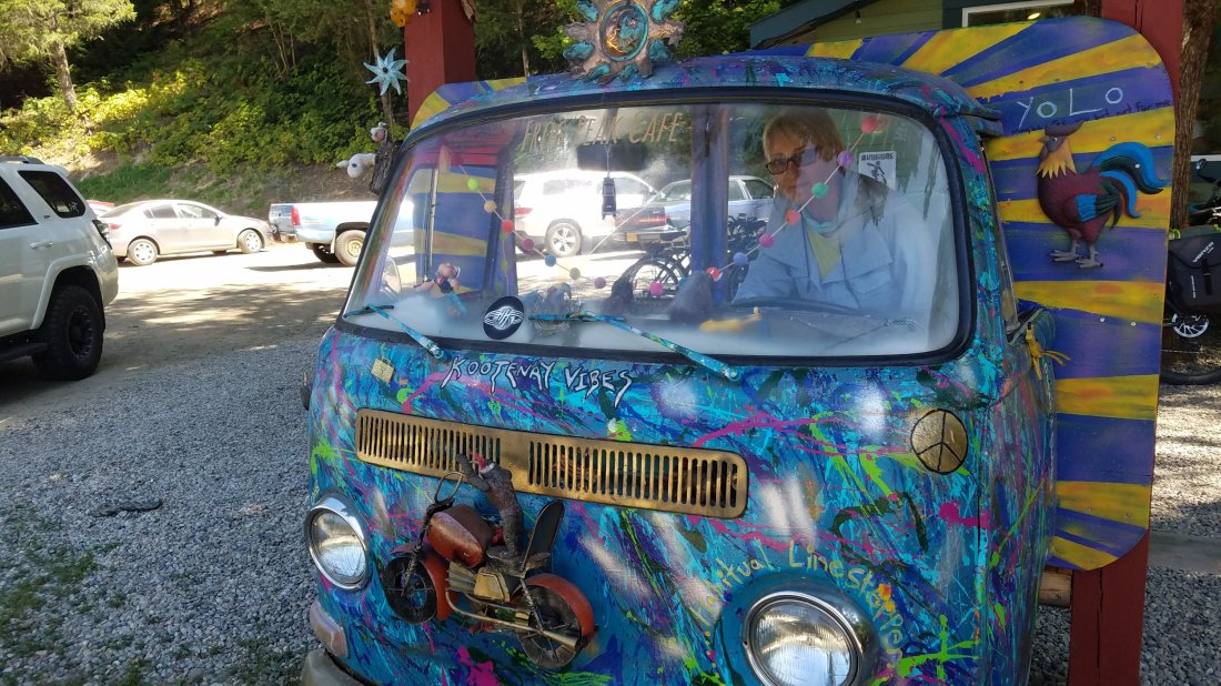 Yes, it is a bit of a hippie place or maybe it’s Millennials? You had to say things like cool and dude while you ordered. Regardless, the food was great and I enjoyed a Reuben Benedict breakfast for lunch. That was after a piece of key lime pie – no kids with us = no rules. Some of you probably think we’re still biking in British Columbia but in fact we found an old VW van and decided it would be more fun.