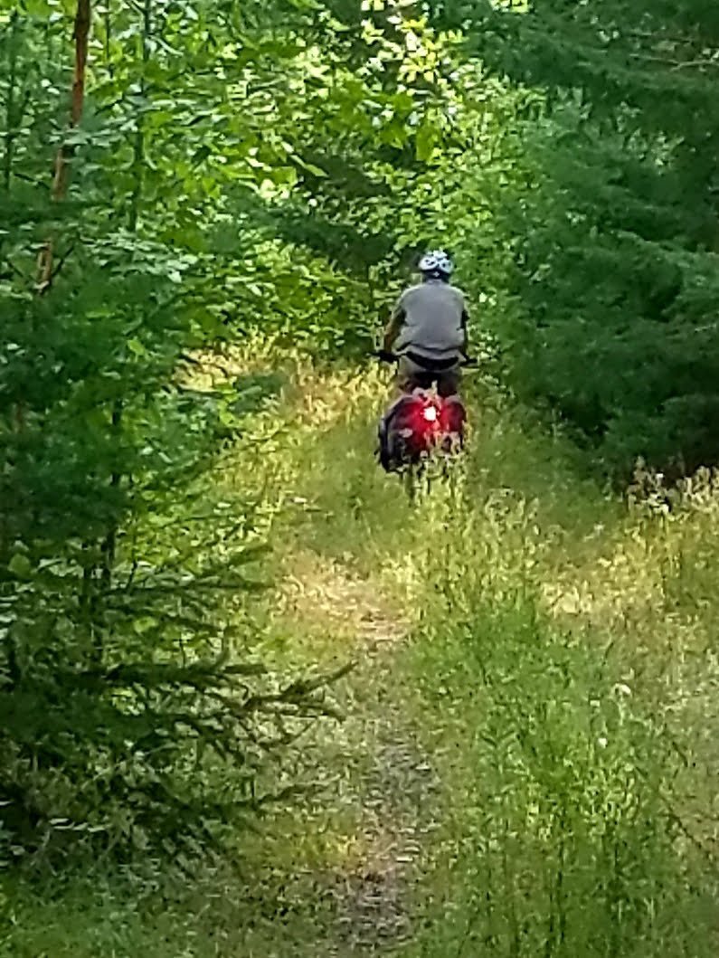 Riding out of town we were faked out by a paved trail and a lit tunnel. We thought the ride would be easy. Pavement ended and we were soon bouncing across a fairly rough trail as this section is used by ATVs. But, it was so beautiful as we followed a river up to Otter Lake.