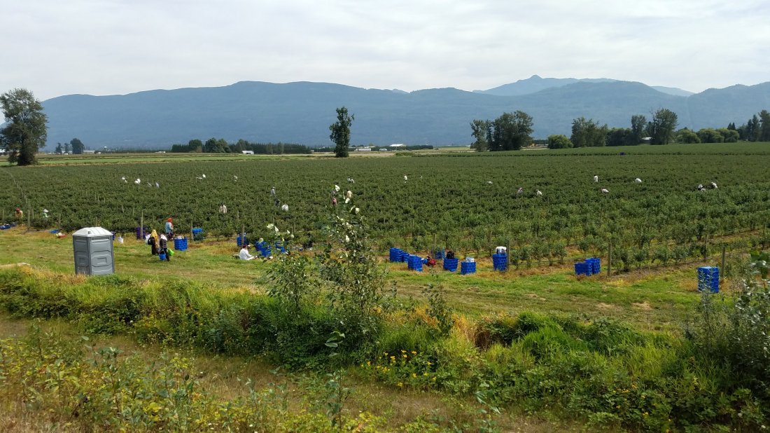 Interestingly, blueberries are grown in great numbers in this area. It took us awhile to figure out what the plants were that we were riding past. But a bear seemed to know exactly that they were blueberries. As we came along the Levee we passed a field full of people picking the blueberries. Literally as we looked back onto the trail we saw a bear standing ahead of us. The bear ran off the side of the levee but stayed at the bottom. We were able to ride past but he was clearly waiting for the blueberries.