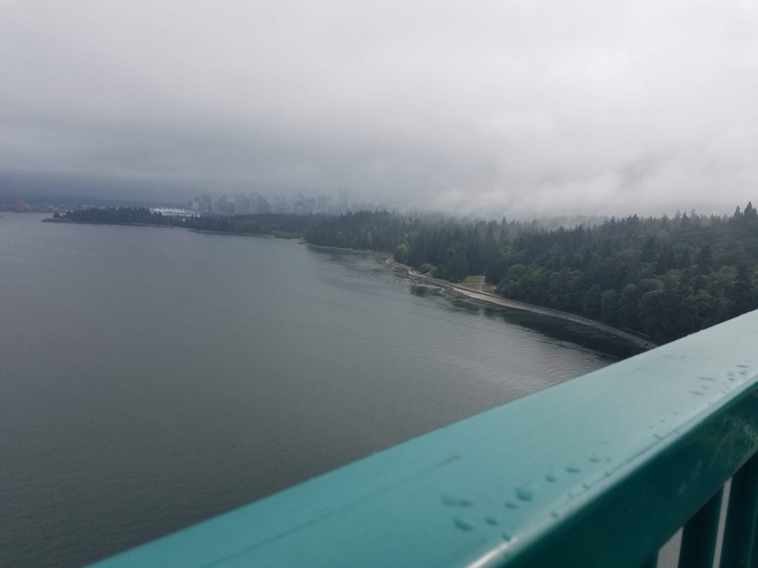 The high location likely gave great views but we were in a cloud. I gave up on the app and used Google Maps. It took us directly through downtown Vancouver but being such a bike-friendly city there was a road just for bikes that worked out very nicely.