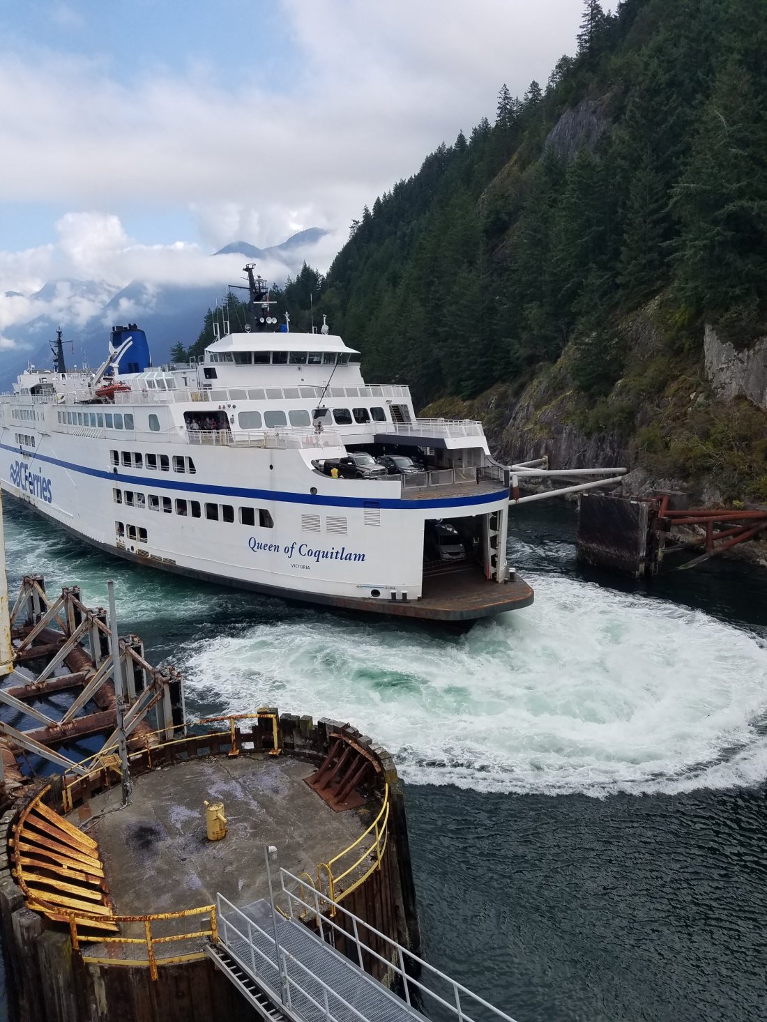 After breakfast I realized we were almost going to miss the ferry and so we hopped on our bikes and raced along the coast towards Horseshoe Bay. I should have taken more pictures but I was busy navigating the narrow roads and many terms. It is better than any picture can show as the mountains, trees and rock literally come right down into crystal clear ocean water. The lineup of cars and trucks was massive for the ferry, but fortunately on a bike you just walk on after paying. I highly recommend bike travel when you’re taking Ferries.