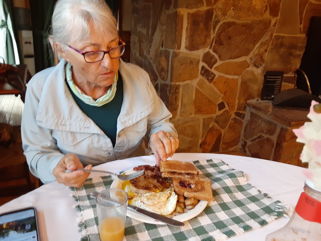 We were glad he came because he was a good cook. When we walked into the kitchen he listed off about 7 things on the menu and I said that would be fine. He actually fed us all of them. We had a stack of eggs, bacon, sausage, fried potatoes, and toast with his homemade Huckleberry Jam. Perfect start to what would be a relatively long day.