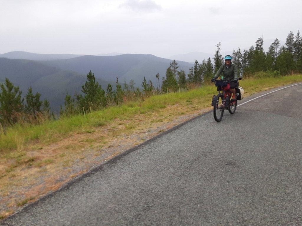 At 32 miles we finally arrived at the top of the pass. We had been rained on while climbing about 3,000 vertical feet so we didn’t stay long  but it was beautiful as we could see out over the trees.