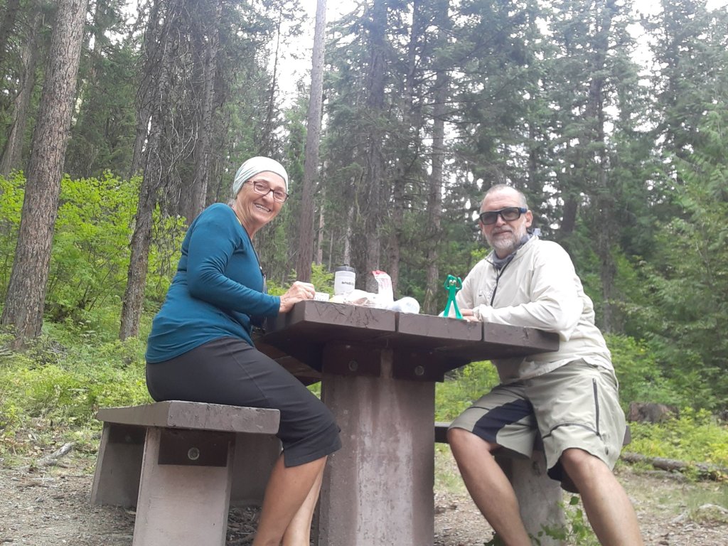 Down was definitely easier than up and we quickly covered about 12 miles. We found a picnic site not far from Lake koocanusa and enjoyed our last lunch in the woods. Miraculously, Gumby was still with us.