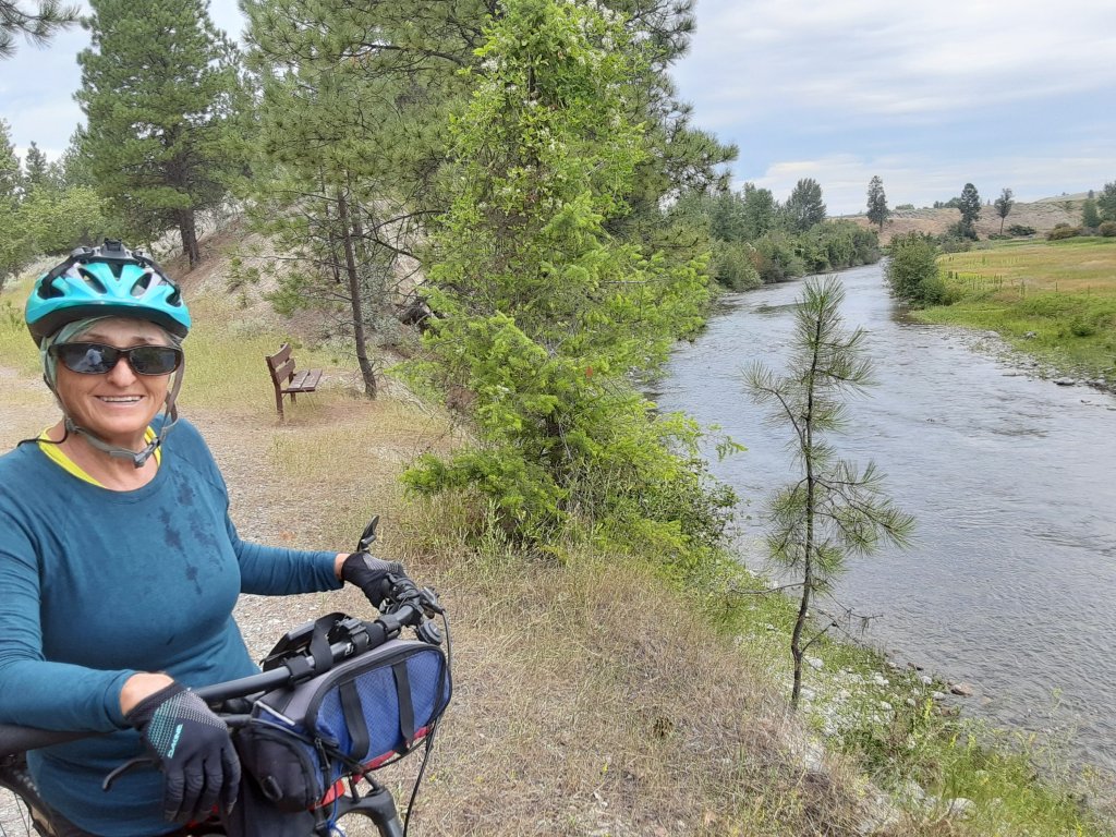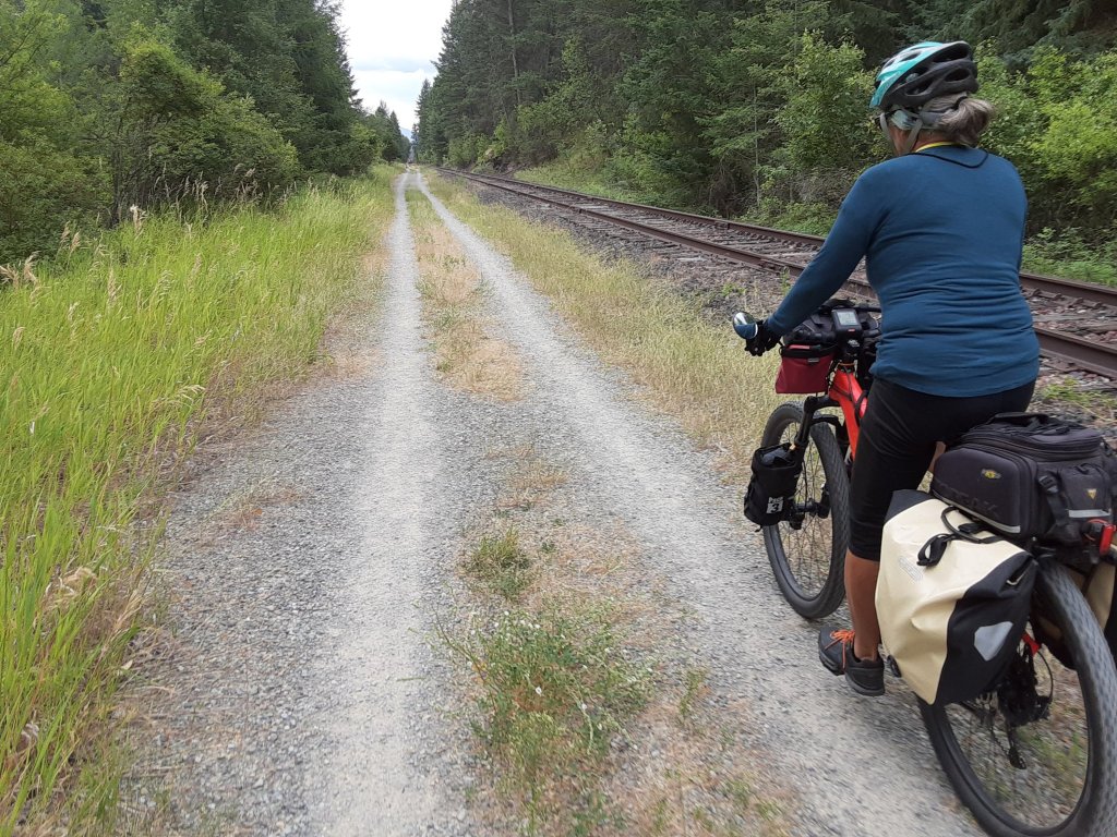 A few miles up the road on the east side of the koocanusa lake and we were back on the rail trail. Rail trail would take us a few more miles along the tobacco River into Eureka.