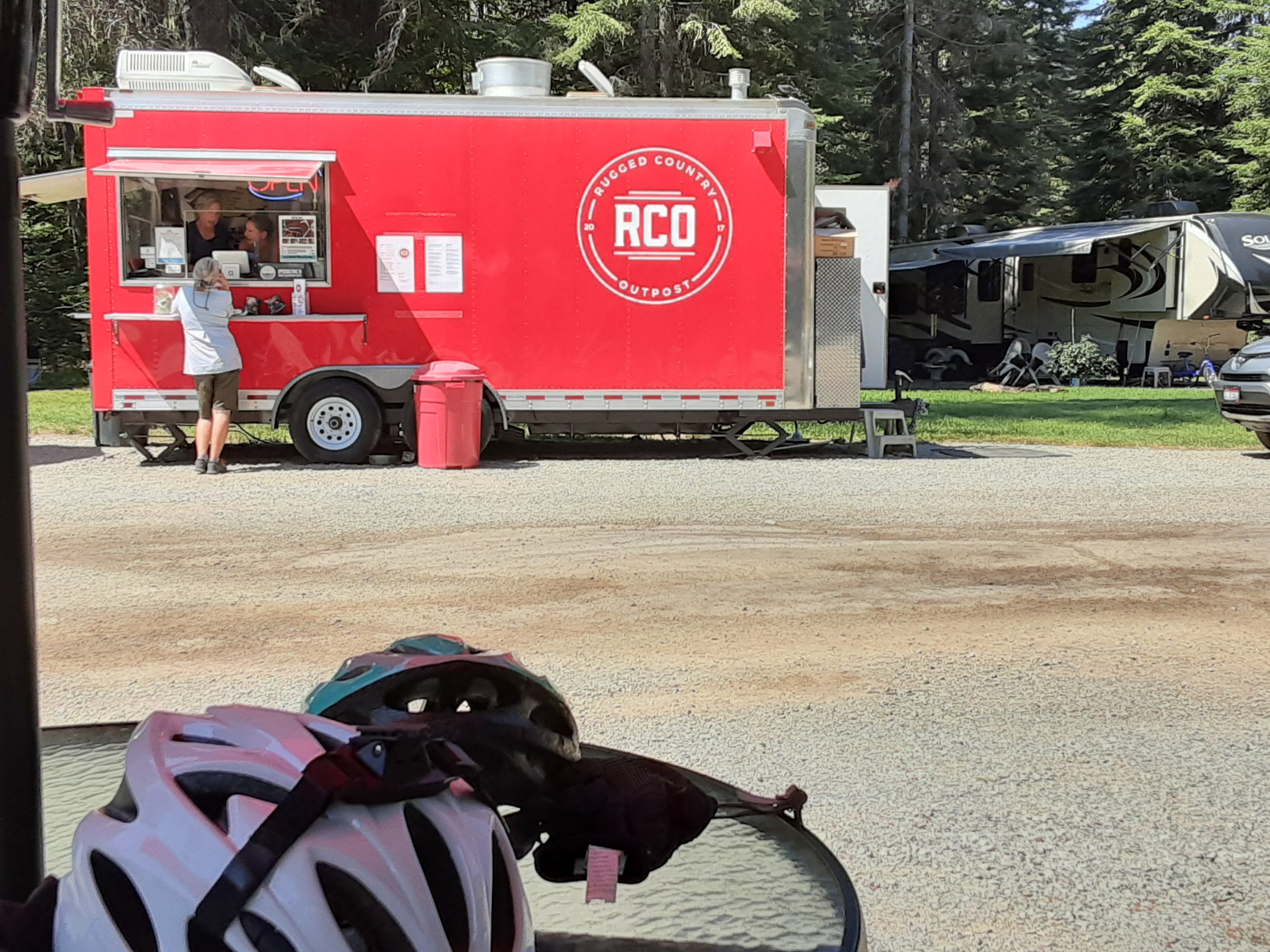 We stayed the night in a cabin. Even at a motel the rooms are cabins in Montana. Everything’s a cabin. Everything is made of wood in Montana. As you pedal around through the woods in Montana it makes sense.