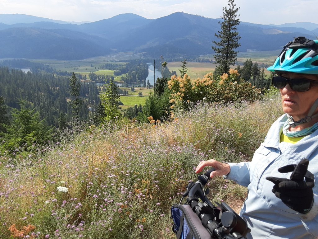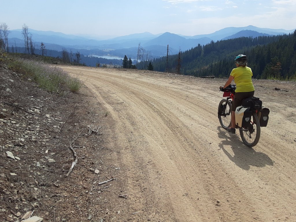 When we turned off the main road just a mile from Highway 3 and started up a barely labeled, one lane, forest road, Gloria dutifully followed. She couldn’t really complain because she had refused to ride on any of the busy roads that went directly into Coeur d’Alene. I couldn’t blame her but I also didn’t have two batteries and a motor like her. The hill was steep and in fact on the profile view of Google Maps looked vertical. The good news was that we quickly gained elevation. The bad news was that we quickly gained elevation. It was steep.