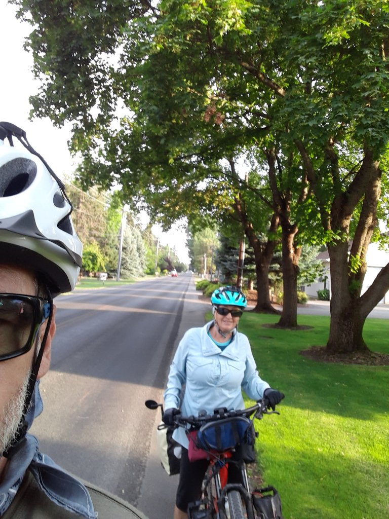 We did enjoy relative quiet as we took side roads and headed north out of Coeur d’Alene and into and through Hayden. The route was mostly flat with tree-lined streets and it was cool outside and beautiful.
