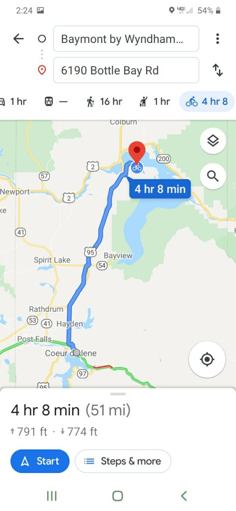 Gratefully we did not have to stay on the highway for long. We headed off into the side roads again for the last 15 miles of our day. We were getting closer to Sandpoint and the Powell’s house on Bottle Bay Road overlooking Lake Pend Orielle. I’m not sure why they let the French name all these places but it sure makes for a lot of extra vowels in each word. Despite the name the place is beautiful.