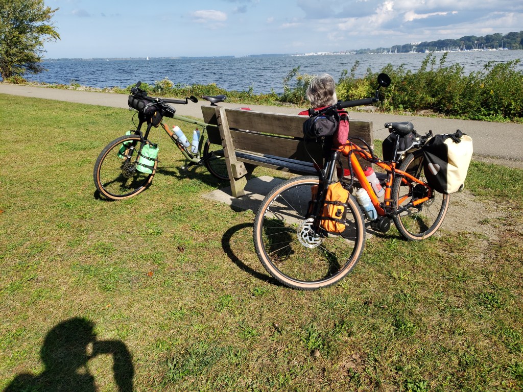 Of additional concern we head south tomorrow away from the lake. I’ve no doubt we will see some beautiful country on our two day ride to Pittsburgh. My worry is that it appears to have some hills. I’ve become pretty lazy riding along the relatively flat lake shore and the pancake flat Erie Canal. Tomorrow, I have to man up – or hold onto Gloria on her e-bike.