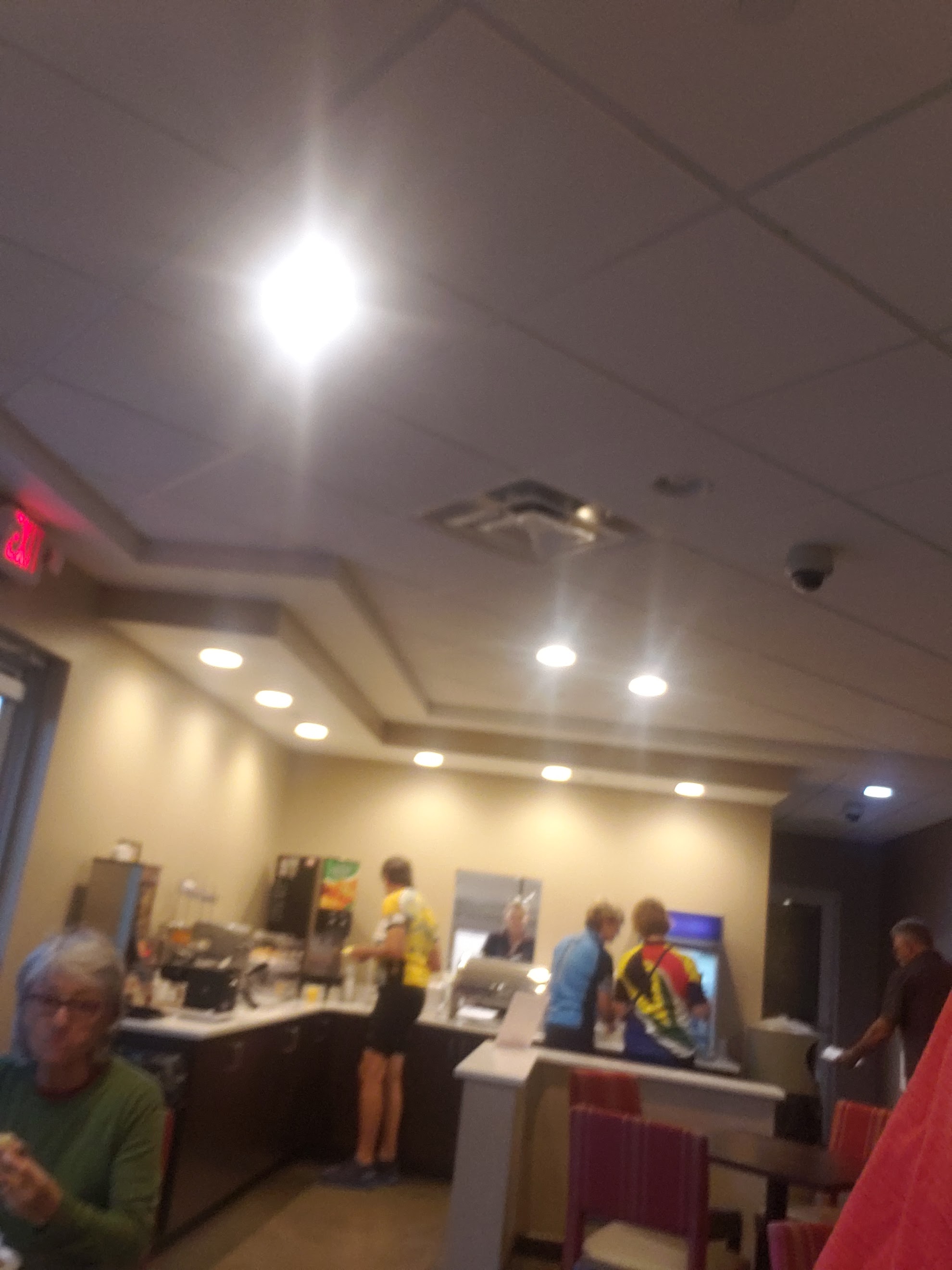 Breakfast this morning was hard to eat. I was a little sick looking around at the flabby old people in spandex. We’re on the GAP and apparently so is everyone that ever wanted to ride the Tour de France. Unlike the tour, most of these folks (well, us too) are two or three times the age of the average tour rider. Like the tour, I suspect many of the men are taking steroids but it isn’t helping that much – everything is pretty saggy and spandex just accentuates the sag.