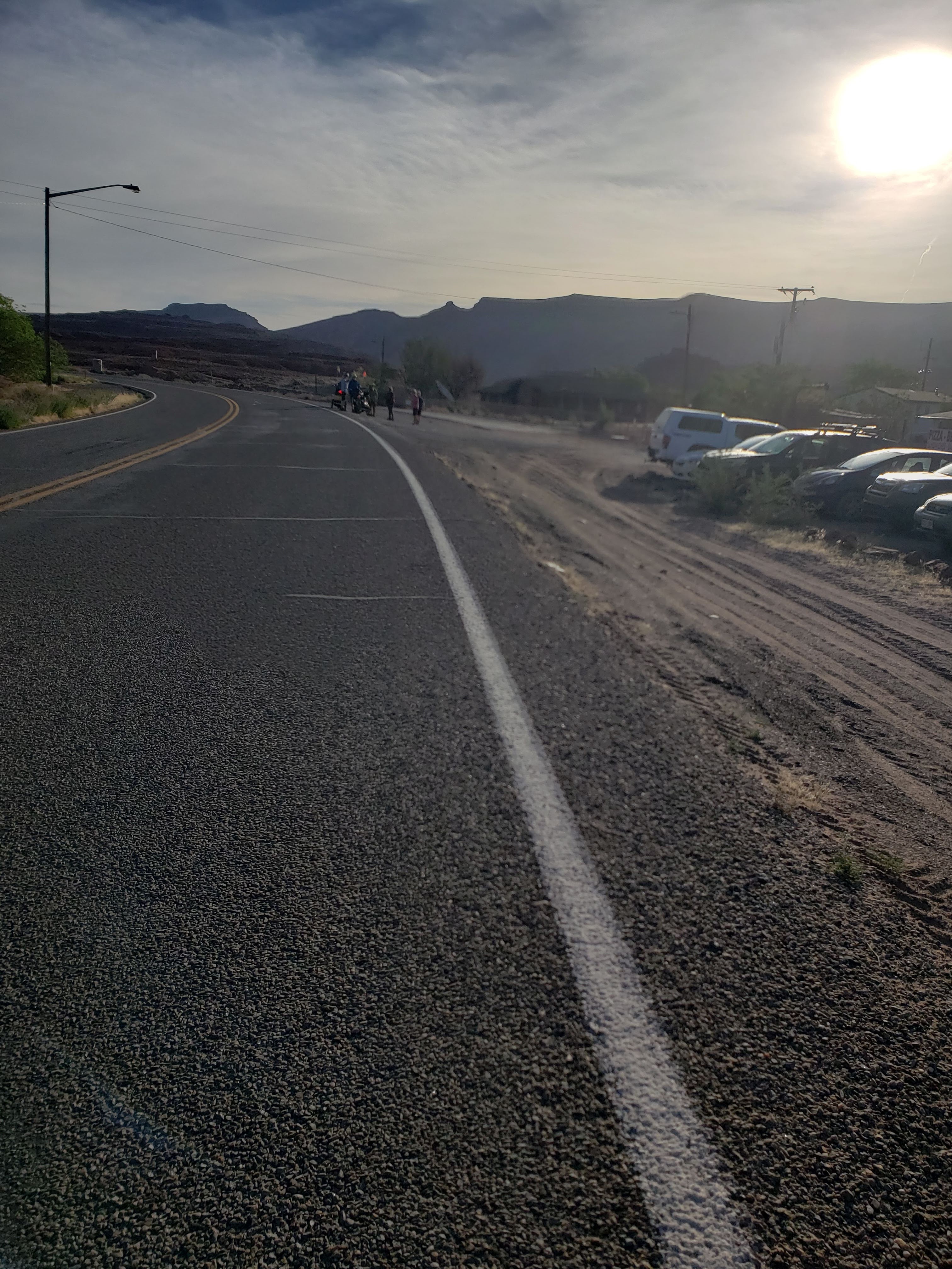 Before we could reach VOG B&B the wonderful day became not so wonderful. The pleasant stops along the way had delayed us long enough for the wind to arrive suddenely and ferociously. Of course it was also blowing against our direction of travel. The other three likely thought it was annoying to have so much dust and sand blowing around as their motors assisted in propelling them forward. I found it difficult to simply move forward against the wind. Thankfully, we were only a few miles from our destination so it wasn’t painful for too long.