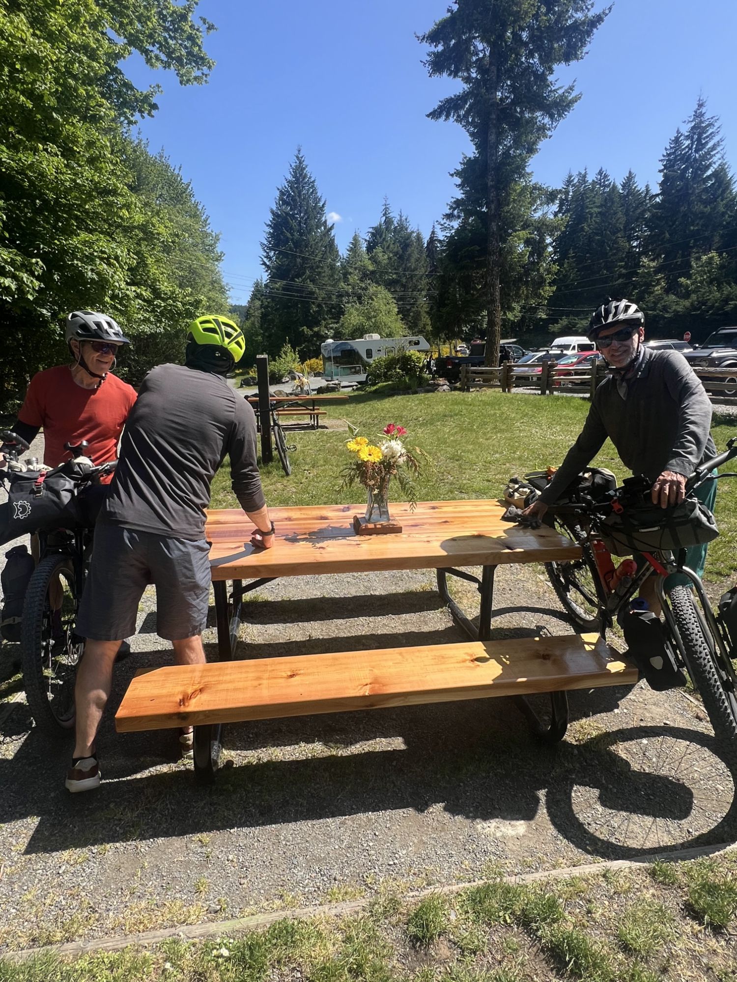 Having Jessica and Nick available for the first two days was incredibly helpful. They met me around mile 40 at the trailhead pictured above and we were able to ride together for a good 10 mi. They then returned to their truck but met me in Lake Cowichan where we spent the night at a vrbo. They took care of me last night by taking me to dinner and then this morning to church and provided a wonderful dinner for me this afternoon before they headed back to Victoria.