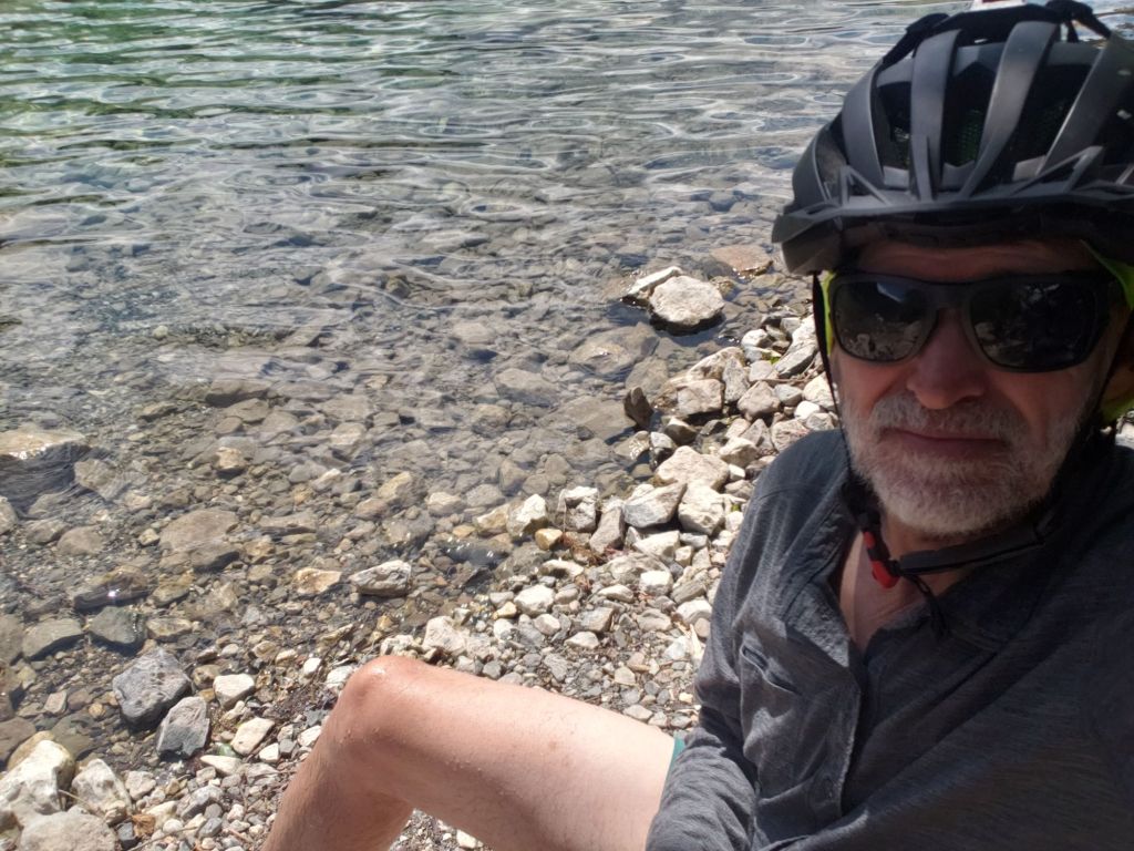 So, how can you be 10 years old again? Unfortunately, nowadays, being 10 years old means spending time on a screen. When I was 10 (now I’m really sounding like a senior citizen), I rode a bike like a madman because it was the most incredible freedom I’d ever experienced. So to be 10 again is getting a big BMX bike—in other words, my 29er MTB—and flying down huge hills with a cape streaming out behind me: my sunshade. Then it’s jumping into a cool, incredibly clear lake. It’s being in awe of simple new things like The Little Prince. Gratefully, that’s what this ride is for me in many ways.