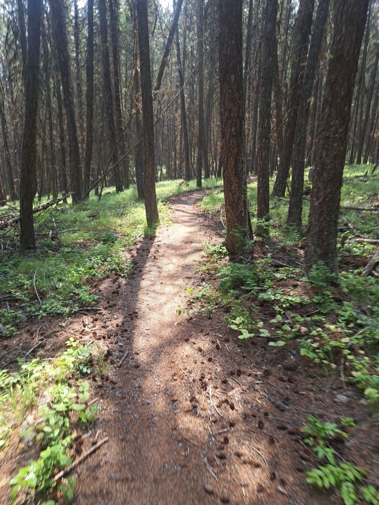 The Chief Isadora rail trail led me North out of Cranbrook this morning. It was perfect with a wonderful surface as well as grade and surrounding picturesque mountains trees. I cruised rapidly for several miles but quickly discovered that a fair number of other people were on the route one way or another. A couple of older gentlemen (my age) stopped to visit with me, and we had a wonderful chat about retirement and how they spent their time doing things like riding through these woods and skiing at Kimberly. I was envious of their living location. It was nice to connect and make new acquaintances as well as learn about the area and the good people that live in it.
