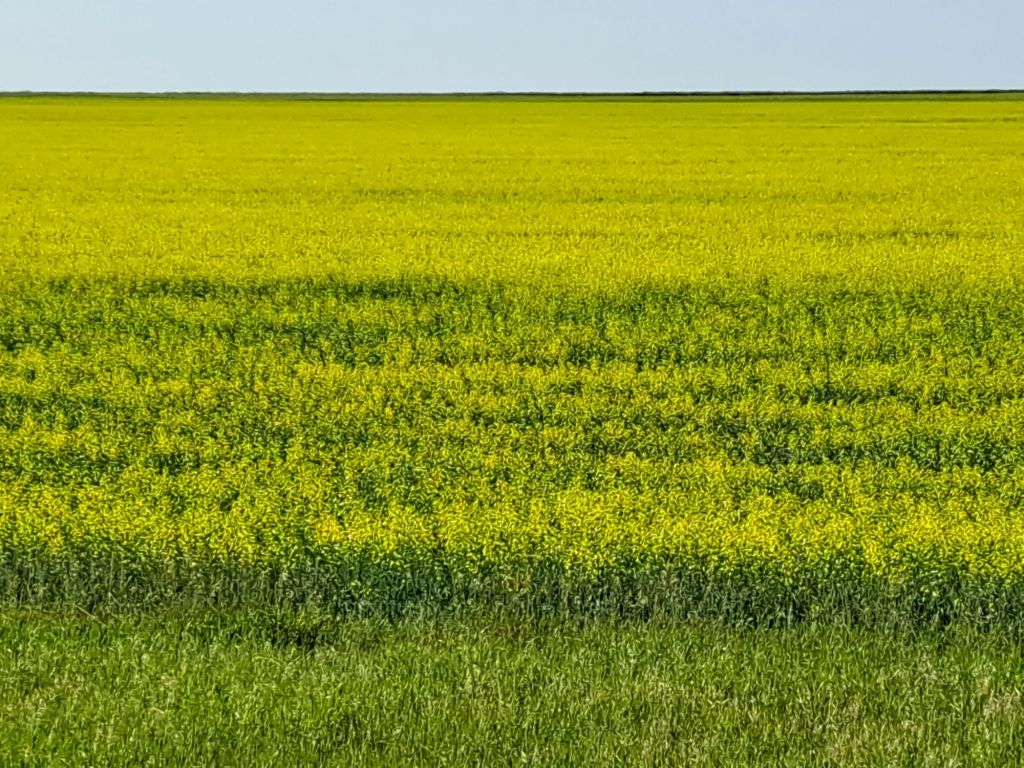 See the thrilling difference. Once I made that left-hand turn, this was my new view for the next 76 km. Breathtaking. Actually the expanse is beautiful and I love to see the crops for some reason.