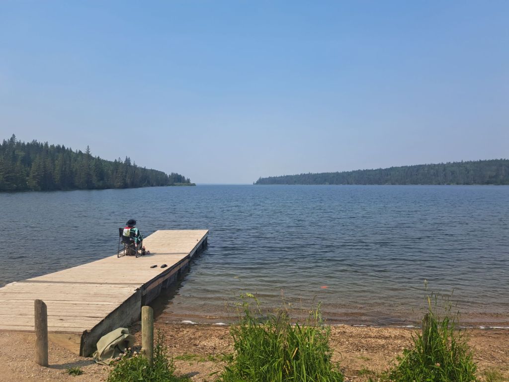 I stayed in Dauphin last night, so I was a little bit off route. Heading south, I reconnected with the route just as it entered Riding Mountain Provincial Park. Matthew, the guy who designed the route I’m on, likely assumed that taking the route through provincial parks would mean the most interesting and beautiful views. What he doesn’t know is that in Manitoba, the provincial parks are not made for people. The bogs, sloughs, stagnant creeks, and gigantic lakes are perfect for breeding insects. I don’t know if it’s a massive entomological experiment by some university or if they harvest the massive insects for protein.
