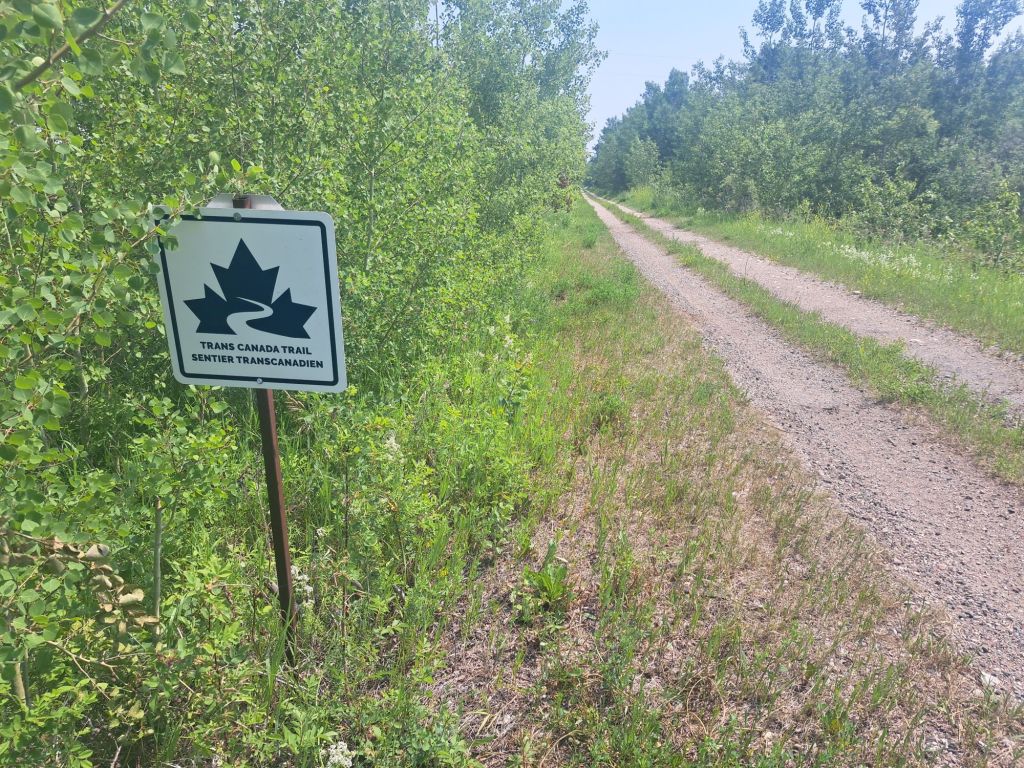 Heading further south, I diverted off the route once again and followed the Trans Canada Trail. This has also been called the Great Trail at one point. Gloria and I followed it across British Columbia in 2019, and it was beautiful. This section was quite lovely. Some of the metal and a spike or two on the trail suggested that this was likely a rail trail.