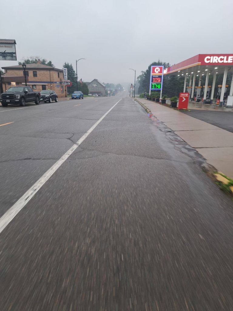 I got out of bed a little late and then packed my bags. As I checked outside, it was overcast and raining, so I went back to the room, thinking I might go back to bed; instead, I did some yoga while hoping the rain would stop. Thankfully, it did, but the clouds never lifted, and it remained overcast all the way to Lake Superior.