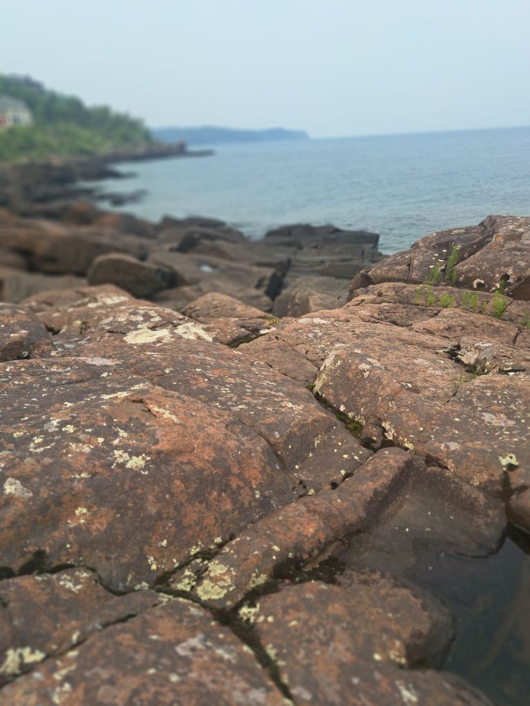 Today is a first for me. It is the first time I’ve seen Lake Superior or Gichi-gami. It is the third-largest freshwater lake in the world by volume. Looking out my window, it might as well be an ocean. I’m very fortunate to be staying right on the shoreline. It’s stunning. Presently, it looks relatively benign, but the waves get big enough that people surf in Lake Superior. And of course, we all know the story of the Edmund Fitzgerald made famous by our good Canadian friend Gordon Lightfoot.