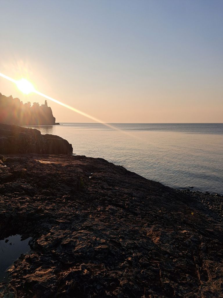 I was up before the sun this morning at about 5:00 a.m. Looking at the weather, I was terrified that the wind would be blasting in my face off of the lake as I headed south to Duluth. Thankfully, it never did, or I was early enough that it didn’t shift into my face. I have to admit that I’m not a morning person, but watching the sun come up over the forest and then the lake was beautiful.