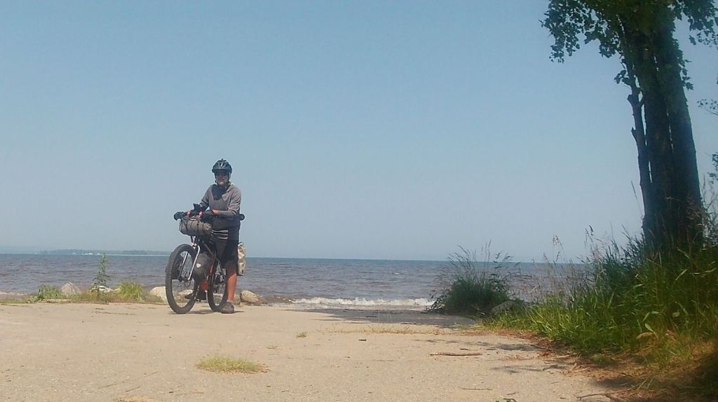 The blue dot is me on today’s route. I must have had a really nice tailwind because I was at about 50 miles and still felt great. I was also back at the shores of Lake superior. I realized as I was peddling to the final Eastern edge of the lake, Sault Ste Marie, that I had been pedaling along the shore for about 2 weeks. That is a big lake! For Michigan, it appears to be one of the major sites for tourism. I read that tourism was the number one industry in the upper peninsula.