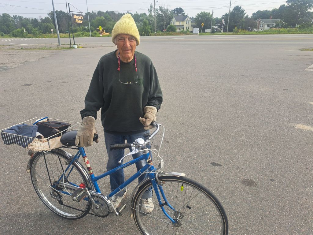 Is it my new bright yellow shirt? Is it just friendly Canadians? Or is it possible that I’m changing just a little bit. The picture above is of Ron Stone. He is 87 years old. Weather permitting, he rides his bike from his home, which he built some 47 years ago, on the shore of Lake Huron three miles to a gas station each morning. He gets a cup of coffee and then sits outside and visits with people as they get gas and snacks. Then he rides home and repeats the exercise each evening for a total of 12 miles a day. So far this year, he’s already ridden a thousand miles.