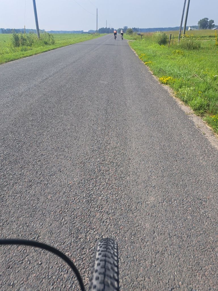 Not long after leaving Ron, these two gentlemen, in the picture above, pulled up behind me. I jokingly told them they couldn’t draft me. Then we started chatting. One of them asked about my daily distances. It’s always more fun to tell people in Canada those distances because I give it in kilometers, which makes it sound much further . They live in Sault Ste Marie. They were on a day trip to a nearby island for lunch. We talked about the roads and conditions as well as my route. One of them had crossed the US on his bike. I’ll let you decide who the title of this episode is about.