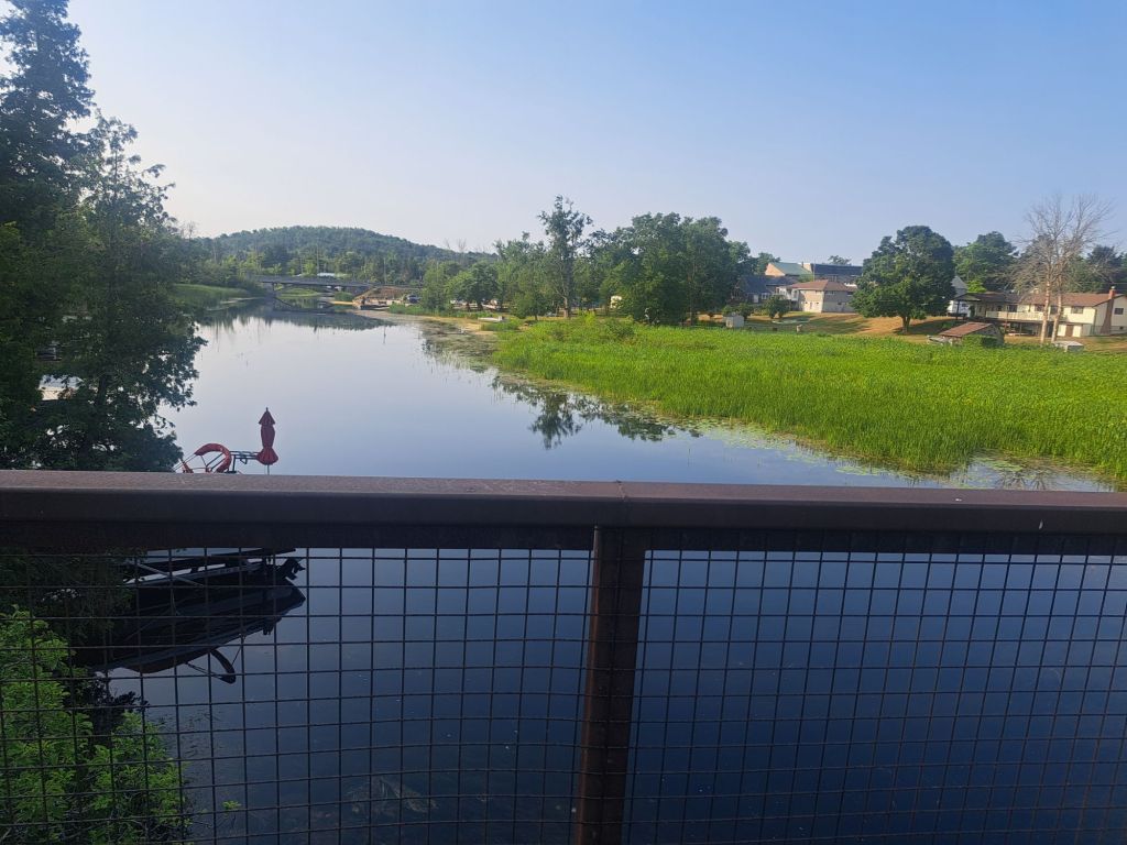 The trail was wonderful, crossing several large rivers and passing lovely little towns along the banks. But all good things come to an end. Eventually, I came upon a trail closed because a trestle was out. Interestingly, there were no rerouting suggestions or detours.