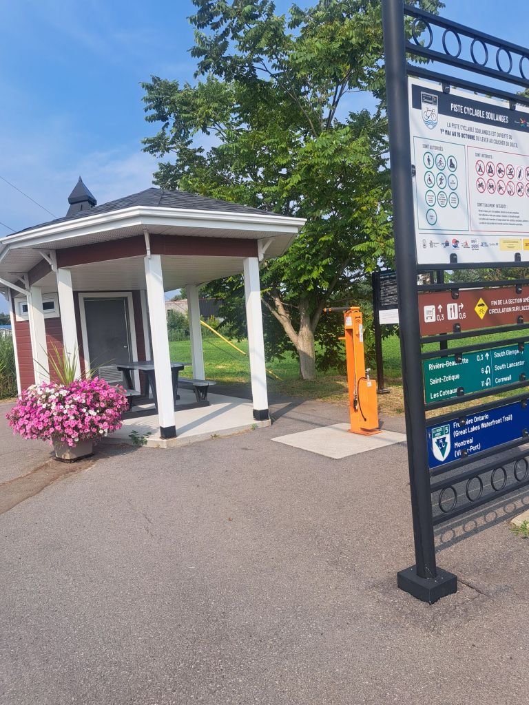 The route was immediately beautiful and extremely pleasant on a paved trail that wound along the shoreline next to the town of Cornwall. I had several miles to enjoy the trail next to the water, but eventually, it took me on to a road but with minimal traffic and a good shoulder. In fact, as I’ve gotten closer and closer to Quebec, there’s been better shoulders and more trails.