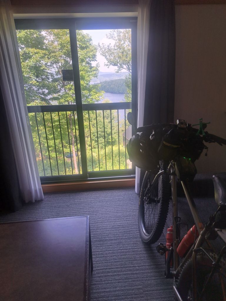 Traffic in the St Catherine de la Jacques Cartier suggested that everyone else was headed to the mountains and St Joseph Lake. Thankfully, there was a good shoulder, and I was able to get groceries before heading to the hotel. The hotel overlooks the lake and I’m feeling guilty for staying in such a nice place but I don’t remember it being very expensive. It is, however, beautiful and would make a wonderful family vacation, especially if you wanted to practice your french.