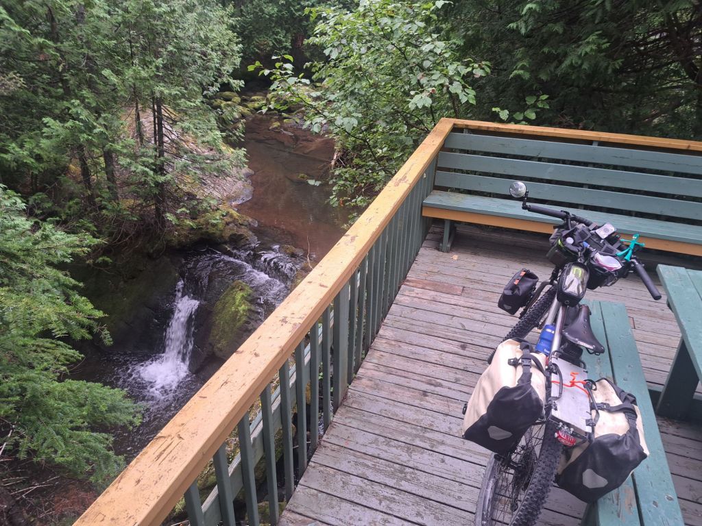 The trail continued pleasantly through the woods, and I soon found myself in the very nice town of Cabano on the shores of Lake Temiscuoata ( I think I put all the vowels in that name). Coming out of the public bathroom (perfectly clean and with flush toilets), an older gentleman, probably about my age now that I think about it, started talking to me in broken English. He and his wife were biking. He was amazed when he found out the ride I had done to this point. We chatted for quite a while again in his broken English and my non-existent French. Since we weren’t talking about climbing, I couldn’t even use the word belay.