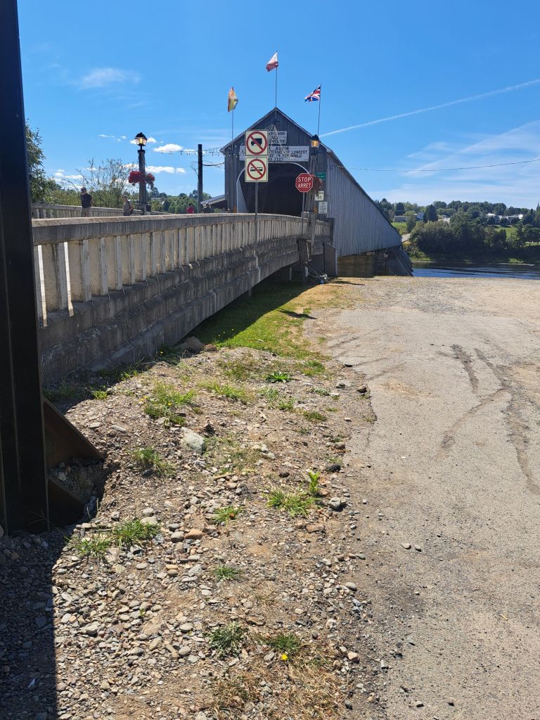 When I wandered off the trail into the town of Hartland to find a convenience store, I happened upon the longest Covered Bridge in the world. That’s what the sign says over the bridge, and I’m going with it. I considered riding through it, but it was a single Lane, and even the cars going opposite directions seemed to be struggling with whose turn it was at any given time.
