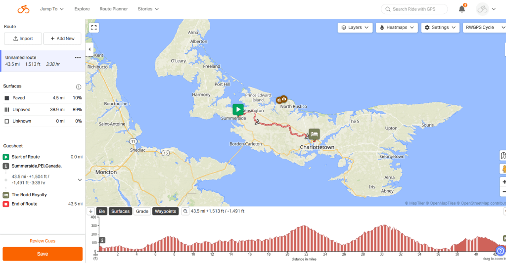 Day 94. Summerside to Charlottetown. 44 miles. 5681 Miles TTD. 1,837 ft elevation. Weather Pleasant.