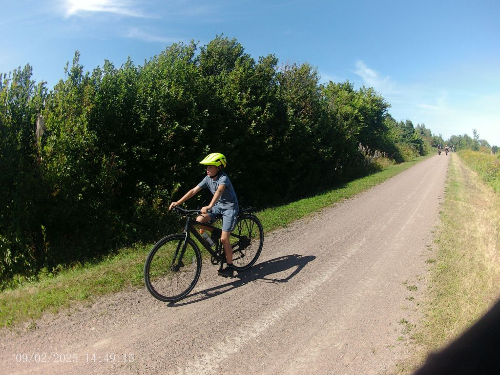 The day started with the usual chaos at the Mill River resort. We enjoyed swimming, hot tub, golf, basketball, and I think even some pickleball. But, it was time to get on the trail with 45 miles to go before reaching Summerside. It’s always interesting how the kids have no idea where their helmet went. Somehow, we managed to find them all start down the road.