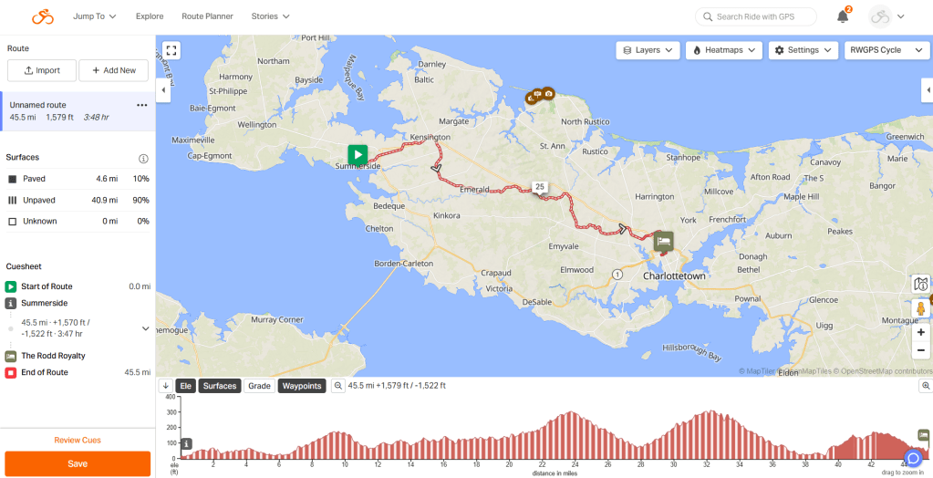 Day 97. Summerside to Charlottetown. 74 miles. 5880 miles TTD. 2130 feet elevation. Weather perfect. My mileage was higher as I drove to Charlottetown (for an easier shuttle) and then pedaled back to meet the group and return with them.